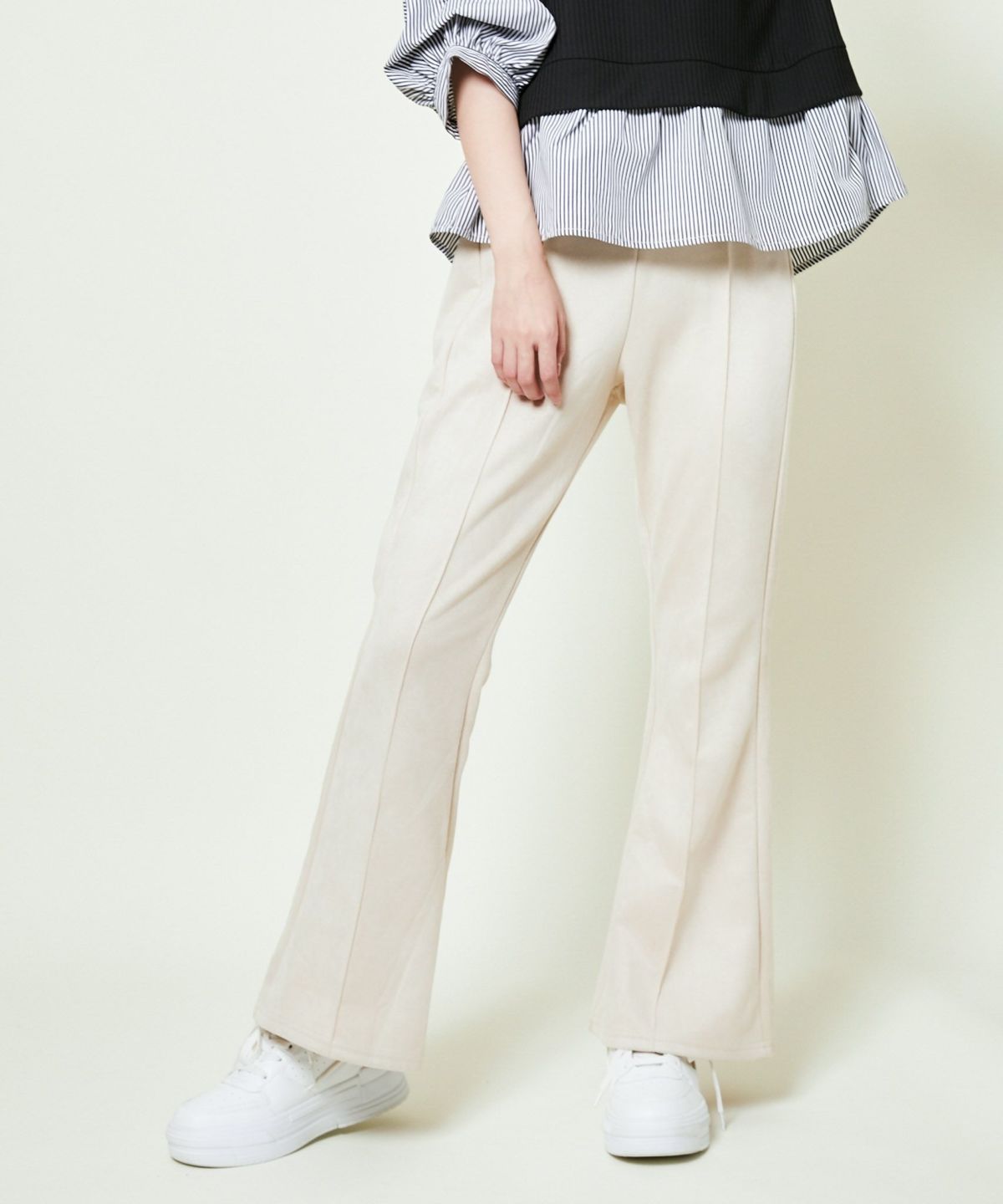 他の画像を見る 《美脚ライン×らくちん素材》脚長効果バツグンのスエードポンチフレアパンツ 2BUY10%OFF 定価 ¥ 4,389 のところ SALE価格 ¥ 1,639 税込 カートに入れる お気に入りに登録する