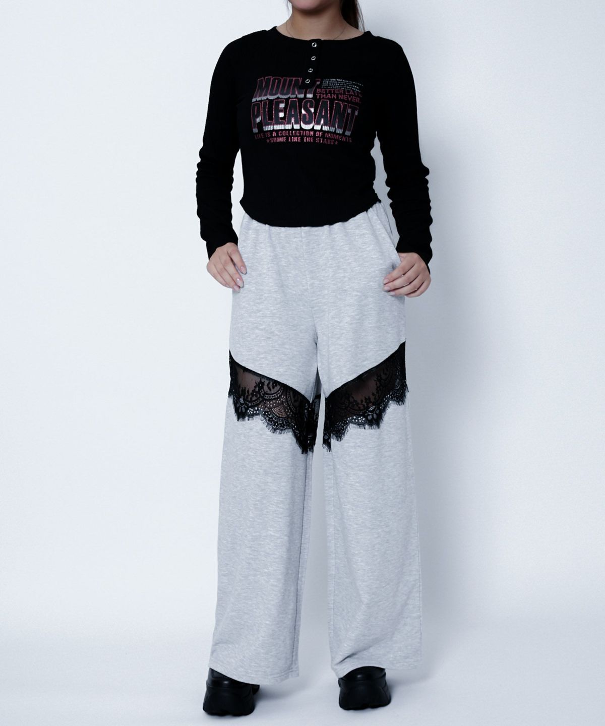 他の画像を見る 《レース切替×スウェット裏毛》レディース ワイドパンツ 体型カバー 楽ちん 春夏秋 2BUY10%OFF 定価 ¥ 5,489 のところ SALE価格 ¥ 2,744 税込 カートに入れる お気に入りに登録する