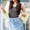 リブ素材ならではの縦のラインが強調され、すっきりとしたシルエットを演出してくれます。ネックラインやアームホールのカッティングが美しく、カジュアルながらも女性らしい印象を与えます。