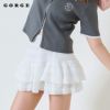 レース素材が使用されており、軽やかでエレガントな印象を与えます。特に、柔らかなアイボリーカラーが上品さを際立たせつつ、甘さのあるデザインに仕上がっているのが特徴です。