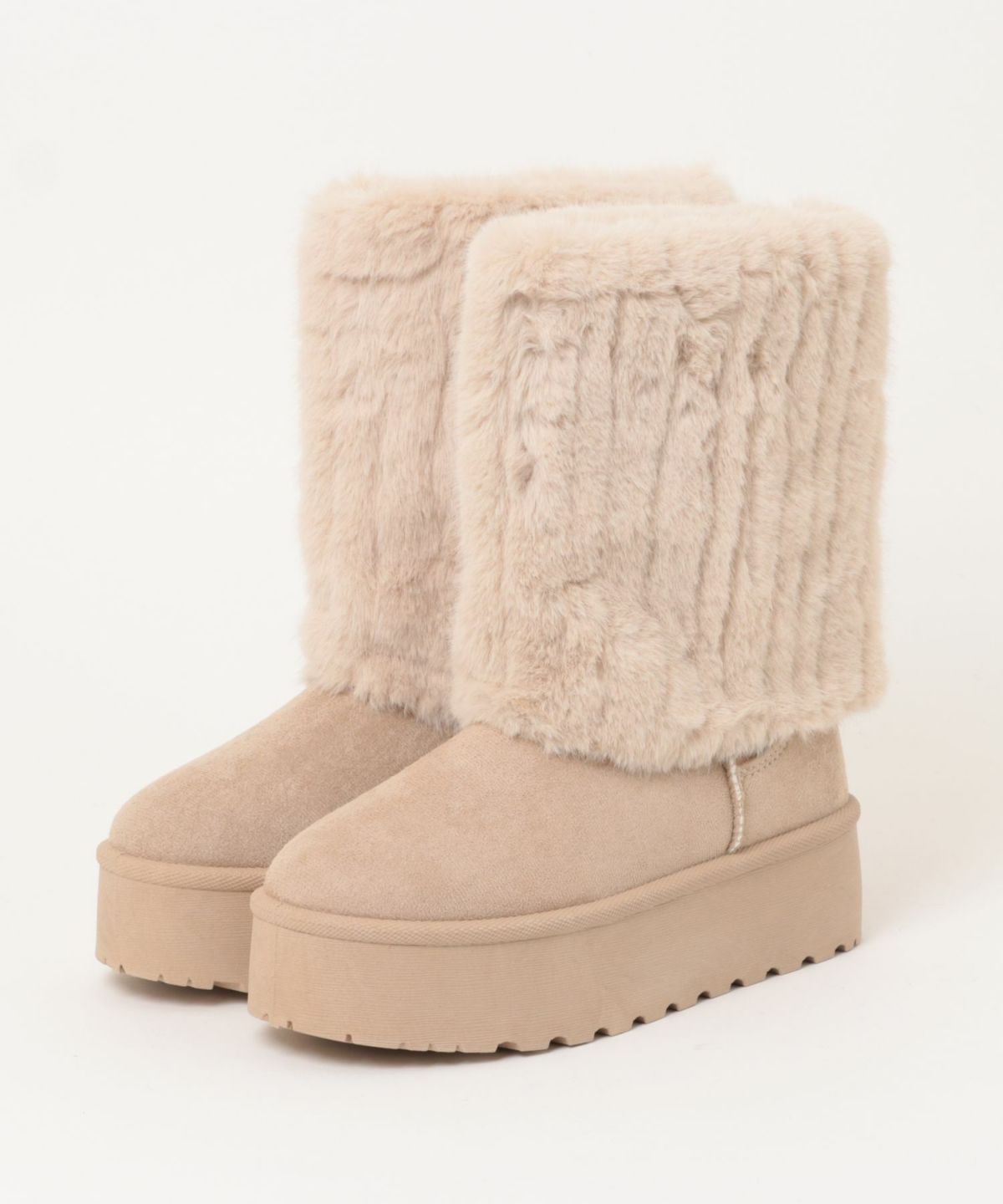 他の画像を見る 《厚底×ファー切替》レディース フェイクムートンブーツ ロング丈 裏ボア 防寒 冬 2BUY10%OFF 定価 ¥ 8,789 のところ SALE価格 ¥ 4,394 税込 カートに入れる お気に入りに登録する