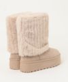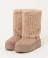 ボリューム感たっぷりのファー切り替えデザインが目を惹くロング丈ブーツ。内側はふわふわの裏ボアで暖かさも抜群。厚底ソールでスタイルアップ効果もあり、冬の主役級アイテムに。