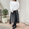 ニットやブラウスと合わせれば、冬のフェミニンコーデが完成。