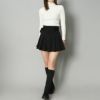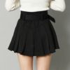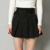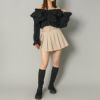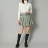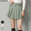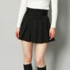 細部までこだわったボックスプリーツでレディライクに仕立てたミニスカート。ハイウエストで自然と腰位置を高く見せてくれて脚長効果も抜群。ウエストを付属の太ベルトでマークすればメリハリ感がアップ。インナーパンツが付いているので、ミニでも履きやすくなっているのがポイント。