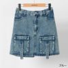 大きめカーゴ風のポケットがアクセントになったデニムミニスカート。緩めのAラインシルエットで、ウエストにはバックゴムを使用し、ストレスフリーな履き心地が嬉しい◎クロップドトップスやメッシュトップスを合わせてトレンド感あるスタイリングが楽しめます◎