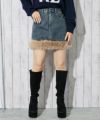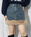 ヴィンテージライクなウォッシュ加工デニムに、裾ファーをドッキングしたデザインスカート。