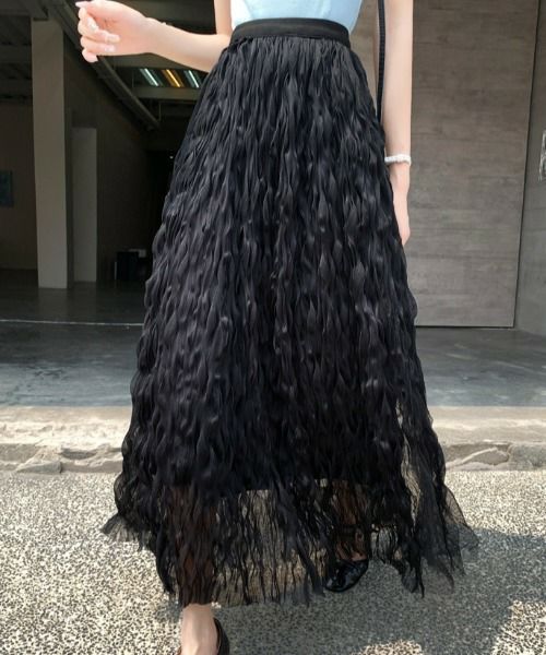 他の画像を見る 《ウェーブチュール×透け感レイヤード》レディース ロングスカート フレアシルエット 春夏秋冬 定価 ¥ 6,589 のところ SALE価格 ¥ 3,294 税込 カートに入れる お気に入りに登録する