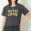フロントのカラーロゴ刺繍がポイントのリンガー刺しゅうTシャツが登場★首元と袖口にパイピングカラーを効かせたリンガーデザイン◎程よくゆとりのあるシルエットが身体のラインを拾わないのも嬉しいポイント♪インもアウトも様になる丈感&シルエットで様々なコーディネートに☆