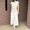 さらっとした生地で上品に決まる夏服定番のオールインワンが登場★普段使いはもちろん少しフォーマルなシーンでも着用可◎普段使いならスニーカーやフラットシューズでカジュアルダウンするのがオススメ♪リボンでウエスト周りをすっきりと見せてくれます☆