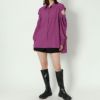 シャリっとした涼し気な質感が特徴の肩開き無地シャツが登場★肩見えデザインが大人っぽいシャツ♪光沢感が上品で高見えするアイテム◎カジュアルにもガーリーにも着こなせる優れもの!少し肌見せすることでこなれ感と抜け感を演出してくれるクールビューティーアイテムです☆
