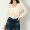 前後2WAYで着用出来る、デザイン調節可能な透かしニットが登場★ドロストがポイントのデザイントップス♪キャミワンピやタンクトップをあわせたシーズンライクな肌見せしたスタイリングが楽しめる◎ドロストはその日のコーデに合わせて調節出来るのがGOOD!前後で雰囲気をガラリと変えられる2WAY仕様です☆