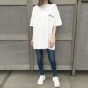 1枚でざっくり着てもオシャレにキマるオーバーサイズのチュニックTシャツが登場★ウエストマークでワンピース風に着てもかわいい♪贅沢な刺しゅうでシンプルなTシャツでも一気にトレンド顔に◎肘まで隠れる袖丈は気になる二の腕をカバーし、ロングシーズン活躍します☆