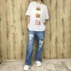 思わずかぶりつきたくなるようなハンバーガープリントが目をひくルーズTシャツが登場★ゆったりルーズなシルエットがラフでストレスフリーな着心地♪長めの袖や着丈で気になる体型もカバー◎POPなプリントはデニムはもちろん、カラーパンツやチェックパンツなどの柄物アイテムとの相性もバッチリ!レースやカラーのシアートップスをレイヤードしたスタイリングも今年らしくておすすめです☆