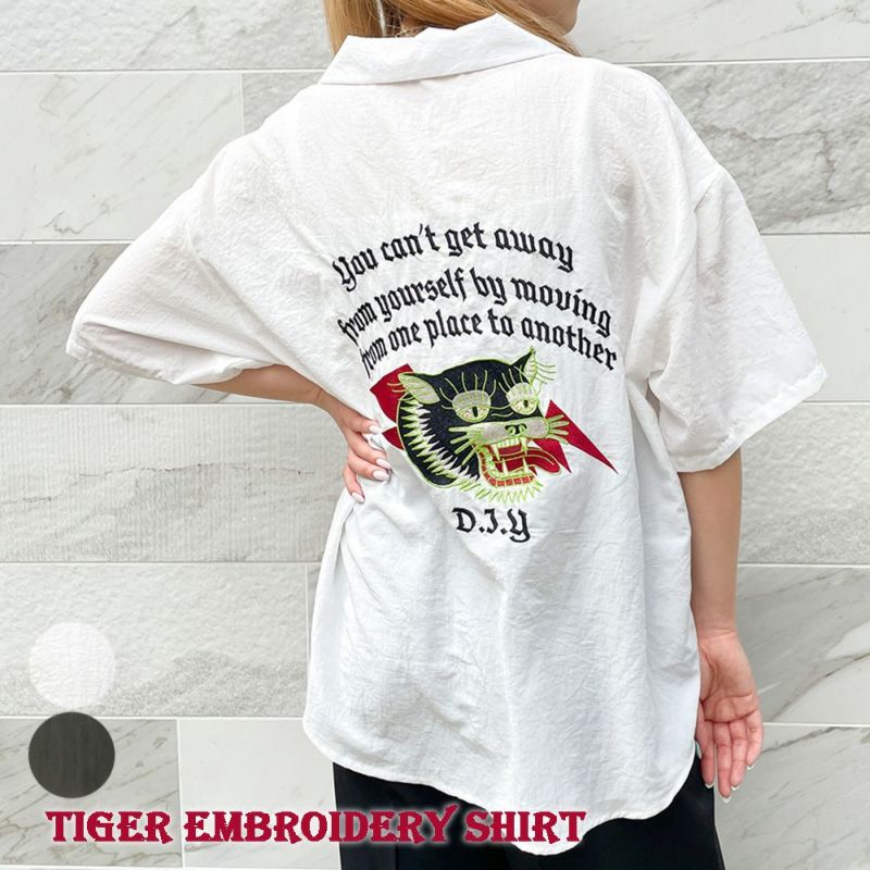 ブラウス トップス 虎 刺繍 開襟 春 夏 2321072
