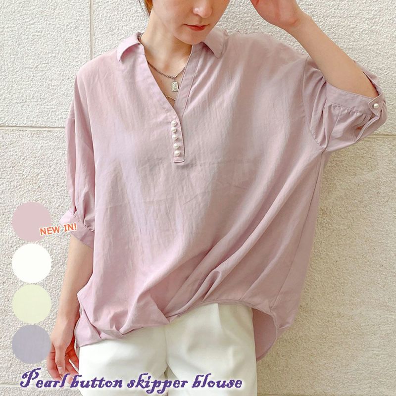 ブラウス トップス スキッパー パール ボタン 春 夏 2321074