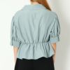 ウエストをゴムで絞った女性らしいシャツブラウスが登場★ハイウエスト仕様でスタイルアップも狙えるトップス♪スタイリングをこなれた印象に仕上げてくれる開襟デザインで抜け感をプラス◎小さいながらも存在感のある多種ボタンで華やかさをプラスしてくれるおしゃれなアイテムです☆