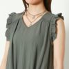 爽やかなムードのある楊柳シフォンで仕立てたワンピースが登場★ふわっと広がるティアードがドレッシーな装いを演出♪控えめなVネックにフリルスリーブがフェミニンでヘルシーな肌見せが叶えてくれる◎ウエストは紐で絞ってメリハリを付けても良し、そのままでリラクシーな雰囲気にしても◎スニーカーでカジュアルダウンしたりヒールパンプスでエレガントに着こなすのもオススメです☆