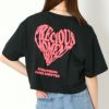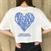 存在感たっぷりのハート型の発泡ロゴプリントをバックにあしらったTシャツが登場★バックにはグラフィックデザイン、フロントにはワンポイントロゴと前後抜かりないデザイン♪薄手のやわらかな生地で着心地も快適◎ワイドな身幅に短めの着丈でバランスのとりやすいサイジングなのでボトムスを選びません☆