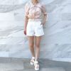 2WAYの肌見せコーデが楽しめるブラウスが登場★腕周りを華奢に見せてくれるボリュームのあるキャンディースリーブデザインが嬉しいポイント♪ウェストと袖口はゴム入りでふわっと体系カバー◎デニムなどのシンプルなボトム合わせでも華やぎあるスタイリングになります☆