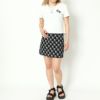 コーデを華やかに演出してくれるロゴ柄のスカパンが登場★絶妙な丈感とすっきりとした台形シルエットで美脚&スタイルアップが叶うアイテム♪ショート丈のTシャツやカットソーコーデで韓国っぽく仕上げるのも◎パッと見はスカートながら内側の裏地がパンツタイプになっており、安心してはけるのが嬉しいポイントです☆