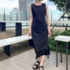 カジュアル見えしがちなカットジョーゼット素材を美シルエットで上品に仕上げたノースリワンピースが登場★シンプルなIラインシルエットが、スラっとキレイな印象に♪程よい厚みで身体のラインを拾い過ぎず、ストレスフリーな着心地も魅力◎一枚ではもちろん、シャツやカーデを羽織ったスタイリングがおすすめです☆