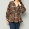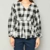 チェック 柄 カシュクール ブラウス トップス バックデザイン リボン フレア ペプラム 2131341