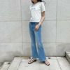 カラフルな英字ラインストーンがデザインされたカラフルラインストーン短丈Tシャツが登場★少しピタッとした形が肉感を拾わずスッキリ見せてくれる♪ロングもショートも似合うのでボトムス合わせが難しくない☆ラインストーンの色に合わせてボトムスやアクセサリーを選ぶと失敗しにくいです◎