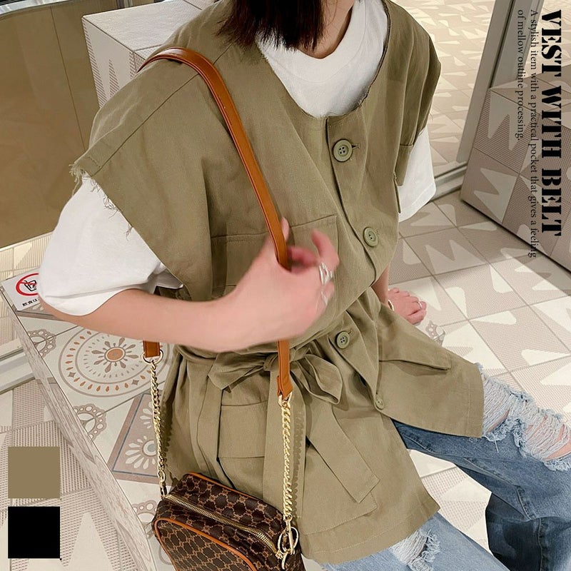 ベスト アウター ベルト付き ワントーン メンズライク カジュアル 春 夏 秋 2232674