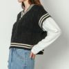 スクールライクで楽ちんドッキングニットベストが登場★ベストとロンTがドッキングされた楽ちんお洒落トップス♪ケーブルデザインが凹凸感を出して高見えする◎デニムやショートパンツなど合わせやすいアイテムです☆