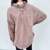 配色バックレースアップシャツ