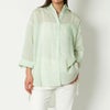 ふんわりとした透け感で夏でも涼しいオーバーサイズシアーシャツが登場★ゆるっとしたシルエットと胸元部分のポケットでシンプルながらも存在感のあるこなれたスタイリングに♪コットンの風合いに仕上げたポリエステル素材でシワになりにくくお手入れ簡単◎季節の変わり目、紫外線や冷房対策としても活躍できるアイテムなのでデイリースタイルにぴったりです☆