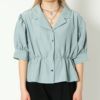 ウエストをゴムで絞った女性らしいシャツブラウスが登場★ハイウエスト仕様でスタイルアップも狙えるトップス♪スタイリングをこなれた印象に仕上げてくれる開襟デザインで抜け感をプラス◎小さいながらも存在感のある多種ボタンで華やかさをプラスしてくれるおしゃれなアイテムです☆