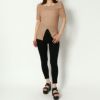 アシンメトリーなデコルテラインがお洒落なニットが登場★透かし編みでエアリーな印象に♪すっきりとしたシルエットで華奢見えを演出し気になる二の腕もカバー◎裾のスリットが表情豊かにしてくれるので、これ1枚でシンプルなスタイルもサマになる、優秀トップスです☆