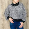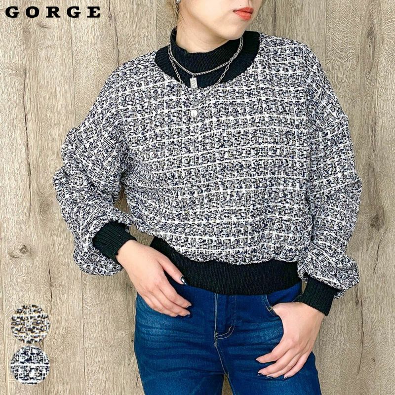 ファンシーツイードの生地が上品な風合いを演出するプルオーバー。