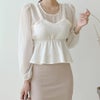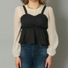 ビスチェをレイヤードしたかようのなトレンド感あるトップス。フラワー柄のふくれジャガード生地とレースの相性バツグン。きゅっと締まるペプラムデザインでパンツやスカートどちらにも合う主役アイテムです。