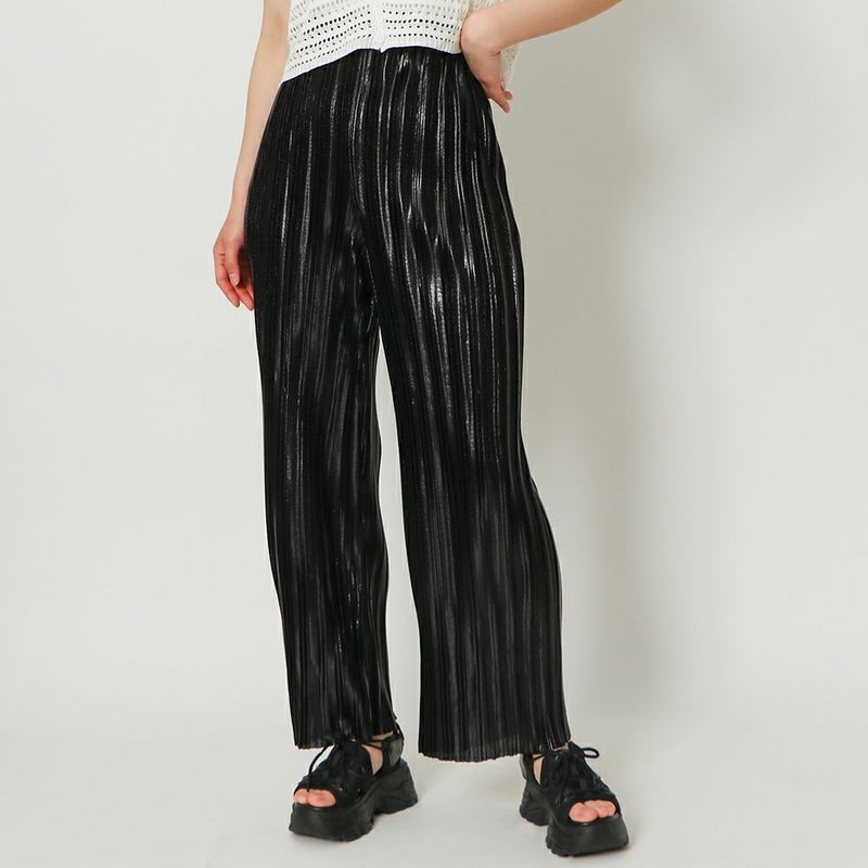 シャイニーな生地が目を惹くプリーツストレートパンツ。光沢感のある生地感が高見え◎ハリのあるプリーツがリラクシーな印象をプラスしてくれます。使い勝手の良いカラー展開なのでどんなテイストにもマッチするアイテムです。