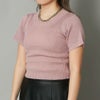 シンプルで使いやすいデザインが魅力の半袖ニット。レーヨン混素材なので、肌馴染みは抜群。首回りと裾をリブ編にすることですっきりとしたシルエットに。コンパクトなサイズ感で着回しの効く優秀アイテムなので、スタイリングに欠かせない一枚です。