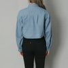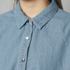 コンパクトな丈感がポイントの柔らかデニムシャツ。フロントボタンがハートになったさりげなく可愛いアイテム。ショート丈がトレンド要素をプラス。気温に合わせて中に合わせるアイテムを変えて、ロングシーズン着用可能。
