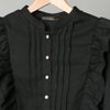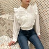 ピンタックフリルのデザインが上品な女性らしさを演出するブラウス。裾はシャーリングになっているので、ウエストラインをすっきり魅せてくれます。スカートと合わせたガーリーなコーディネートがおすすめ◎休日のお出かけコーデに大活躍してくれるアイテムです。
