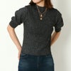 細かなラメがトレンド感のあるリブニットトップス。ハイネックとふくらみのある袖で華奢見えが叶います★キレイめ女っぽコーデにオススメです!
