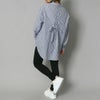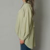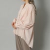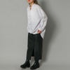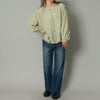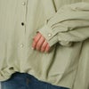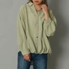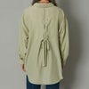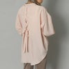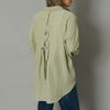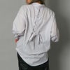 フロントに並んだビジュライクなボタンが目を惹くシャツ。共布のリボンで統一感を出して甘さを抑えたデザインなので羽織としても。程よい袖のボリューム感と可愛らしいリボンで女性らしい着こなしが出来るのも嬉しいポイント。