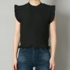 フリルが存在感たっぷりなノースリーブTOPS。柔らかなスポンジング素材は肌離れがよく、すっきりとした着心地。パンツにもスカートにも合わせやすいので普段使いにぴったりです。