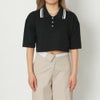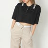 衿のラインがトレンド感を感じるニットポロトップス。レーヨン混素材の肌触りのいい滑らかな天竺生地は着心地抜群◎スポーティーなデザインもトレンドのクロップド丈でコーディネートの幅が広がります。ハイウエストボトムやサロペットと合わせたコーディネートがオススメ★