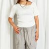 アシメなデザインが、モードな印象を与えるニットトップス。サイドにギャザーを寄せたシルエットも可愛いポイント。合わせるボトムスを問わない、着回し力の高さも嬉しいアイテムです。