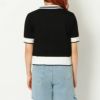 配色デザインのポロニットトップス。配色デザインとハーフZIPでトレンド感のあるスタイリングに。ゆるっと着れる洗練された印象のショート丈デザインは、ワイドパンツから、ハイウエストのボトムスとも相性◎