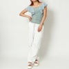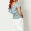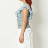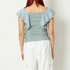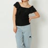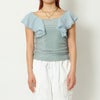 華やかなシャイニー素材がトレンド感たっぷりで目を引くトップス。袖フリル仕様で、愛らしいアクセントを添えてくれます。ストレッチ性の有る素材なので。スタイルアップも◎合わせるアイテム次第でガーリーから綺麗めまで幅広く活躍してくれます。