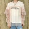 透け感のあるチュールトップスとTシャツがセットになったアイテム。大小効かせたチュールのデザインフリルは合わせるだけで可愛らしさをプラス◎ゆるっとした着心地で、それぞれ単品使い出来るアイテムなので、着回し力も抜群☆