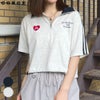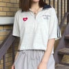 トレンドのハーフジップデザインで仕立てたカジュアルなトップス。ワイド感を持たせたクロップド丈が今季らしく、全体のバランスが取りやすい◎手軽に裾を絞れるドローストリングも魅力のひとつ♪胸元にはハートの刺繍を施し、袖にはダブルラインでカジュアルから甘めのスタイルまで幅広く着用可能。