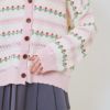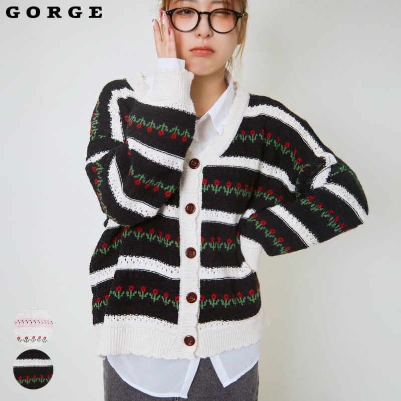 トップス カーディガン ニット 花柄 秋 冬 春 ガーリー フェミニン レトロ ボーダー 2515222