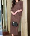 ドルマンスリーブ特有のゆったりとしたシルエットが、気になる部分を自然にカバーしながら、程よいリラックス感を演出。上下ともシンプルなデザインながら、絶妙な落ち感と素材感で大人っぽさを引き立ててくれます。